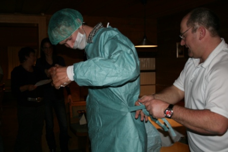 Nach einem ausgezeichneten und reichlichen Abendessen ging es zum gemütlichen Teil über. Dass Bernhard genau an diesem Tag Geburtstag hatte, war noch ein zusätzlicher Grund zum Feiern. Maria und Heidi haben ihm mit lustigen Reimen ein paar wichtige Utensilien zur bevorstehenden Geburt seines zweiten Kindes überreicht und auch für die enthaltsamen Tage unmittelbar davor und danach war noch etwas dabei.